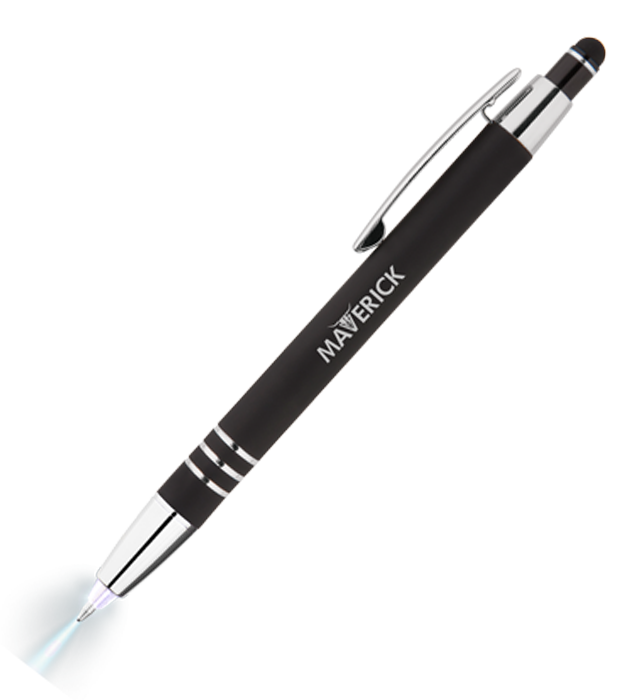 Celena Soft-Touch Kugelschreiber aus Metall mit Stylus & beleuchteter Spitze